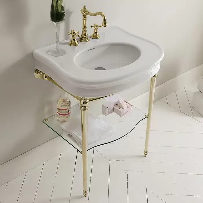 3SC Consolle Консоль Florian 90х54хh86см, с раковиной LA12, сифоном и стекл.полочкой, напольный, цвет: золото 24к. Lucido