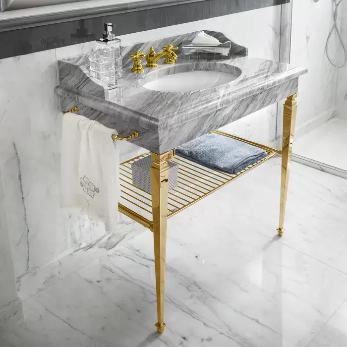 3SC Consolle Консоль Regale 95х60хh77см, с 1 раковиной, сифоном, полкой и полотенцедердателями, напольная, цвет: золото 24к. Lucido