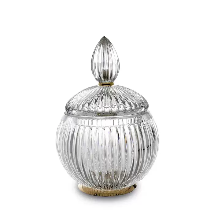 3SC ELEGANCE Баночка универсальная, D=12/h18 см, с крышкой, настольная, цвет: прозрачный хрусталь/золото 24к.
