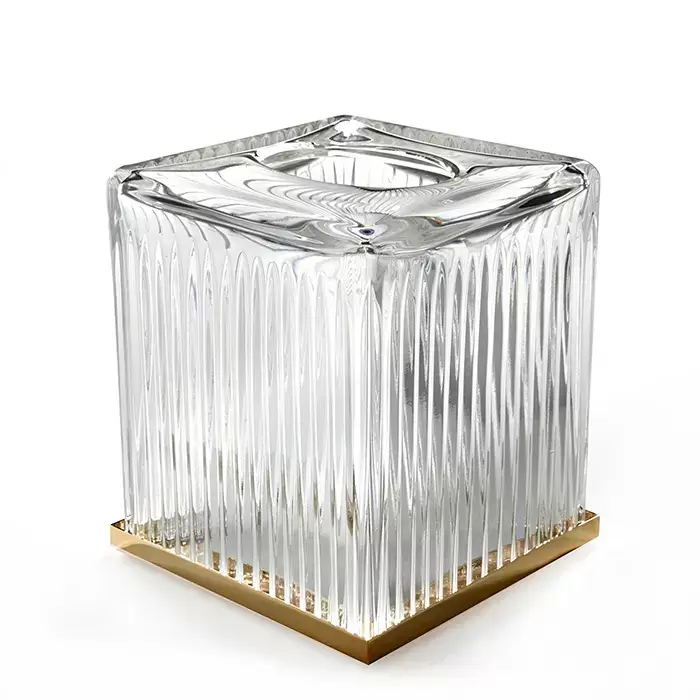 3SC Elegance Контейнер для бумажных салфеток, 13х13х15 см, квадратный, настольный, цвет: прозрачный хрусталь/золото 24к. opaco