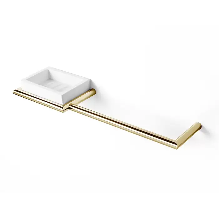 3SC Guy Полотенцедержатель и мыльница, 40см., слева, подвесная, композит Solid Surface, цвет: белый матовый/золото 24к. Lucido