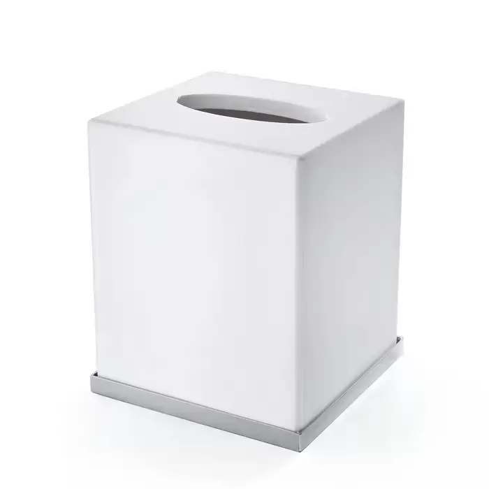 3SC Mood Deluxe White Контейнер для бумажных салфеток, 12х12х14 см, квадратный, настольный, композит Solid Surface, цвет: белый матовый/хром