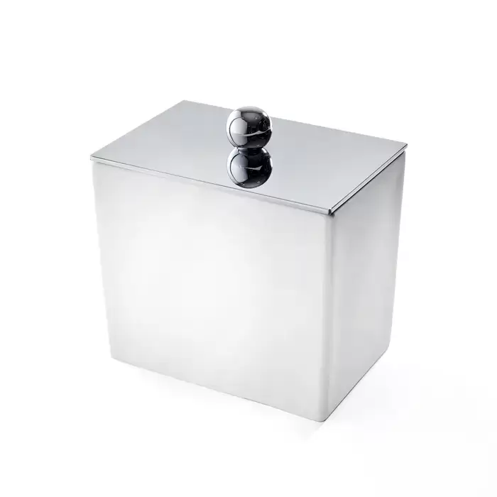 3SC Mood White Баночка универсальная, 10х10х7 см, с крышкой, настольная, композит Solid Surface, цвет: белый матовый/хром