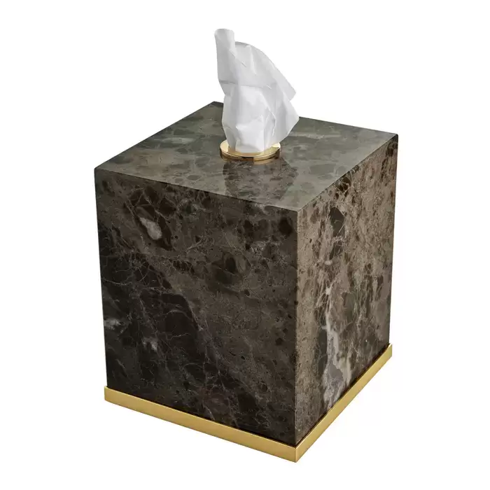 3SC Palace Marmo Контейнер для бумажных салфеток, 13х13х15 см, квадратный, настольный, цвет: мрамор Emperador dark/золото 24к.