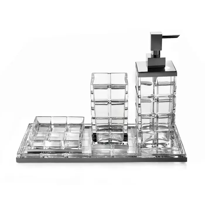3SC Palace Набор настольный 35хh25х16 см из лотка, мыльницы, стакана и дозатора, цвет: прозрачный хрусталь/никель черный матовый