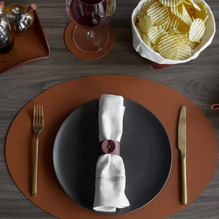 ADJ Плейсмат 47.5x35см., овальный, натуральная кожа, цвет: коньяк/бордо