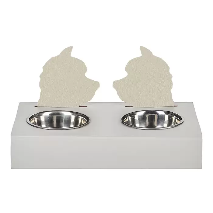 ADJ Подставка с мисками Dog, хром, 40x22xH7.5 см., цвет: белый/панна котта