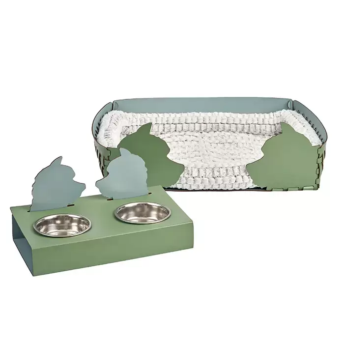 ADJ Подставка с мисками Dog, хром, 40x22xH7.5 см., цвет: эвкалипт/небесный