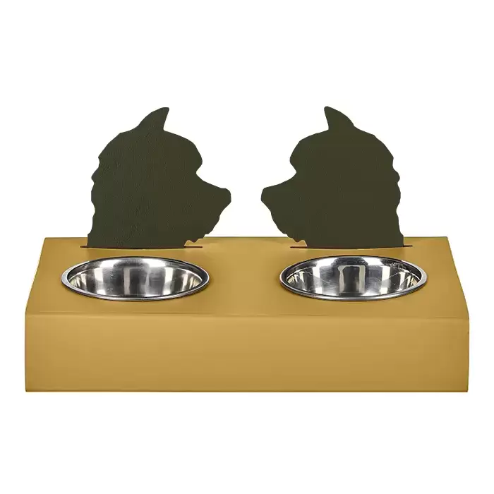 ADJ Подставка с мисками Dog, хром, 40x22xH7.5 см., цвет: горчичный/оливковый