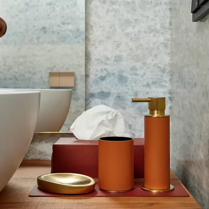 ADJ Стакан для зубных щеток, D7xH10 см., цвет: коньяк/матовое золото