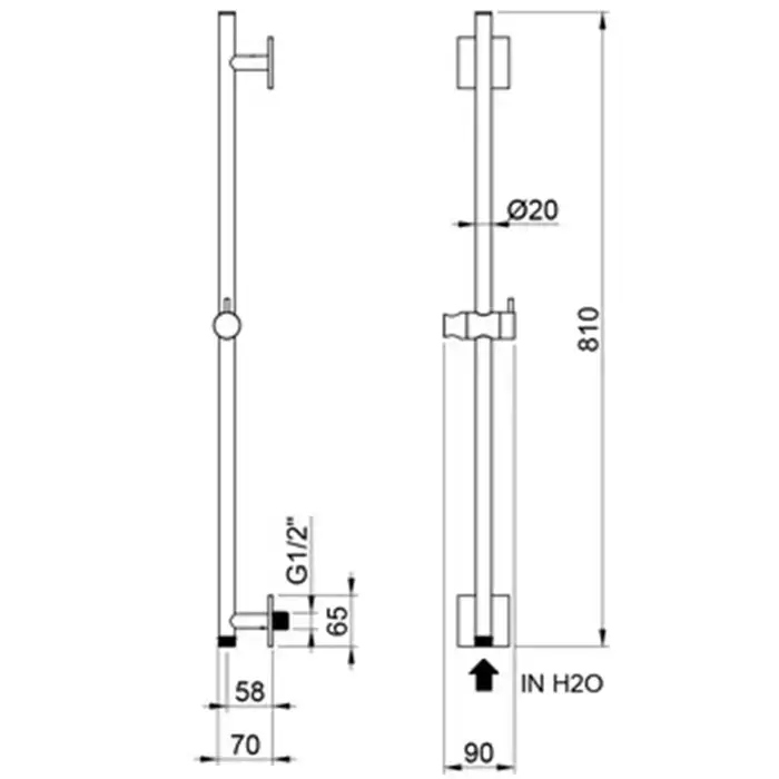 Almar 316 Stainless Steel Штанга душевая настенная 81см., с держателем для ручного душа и встроенным выводом, цвет: нержавеющая сталь брашированная AISI 316
