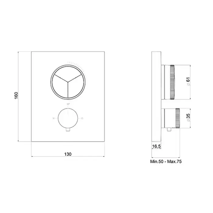 Almar Core Смеситель для душа, встраиваемый, термостатический, с кнопочным управлением для 3-х потребителей, цвет: черный глянцевый PVD