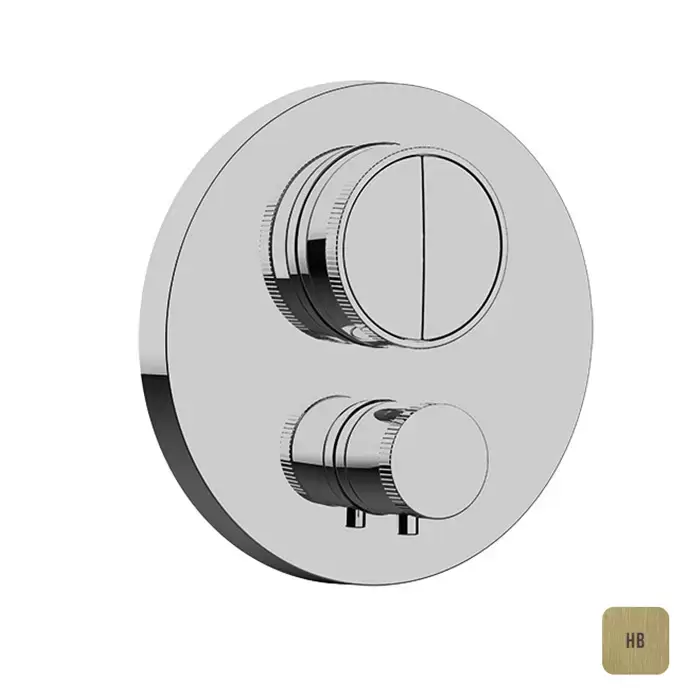 Almar Core Смеситель для душа, встраиваемый, термостатический, с кнопочным управлением для 2-х потребителей, цвет: латунь брашированная PVD