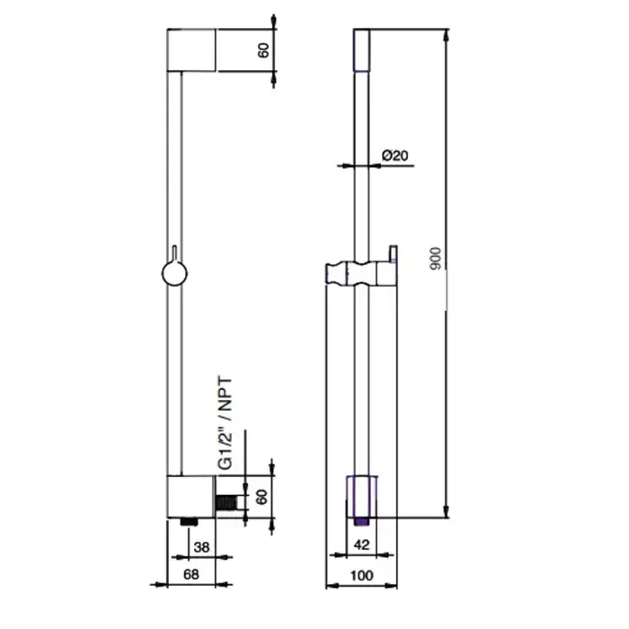 Almar Душевая штанга 90см, латунь/ABS, цвет: хром