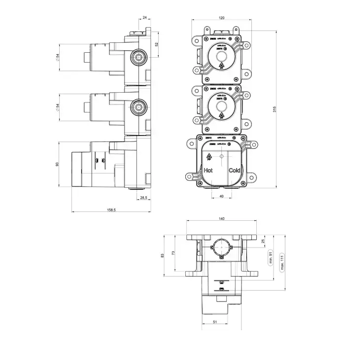 Almar High Flow Встраиваемая часть термостатического смесителя на 2 выхода, цвет: черный матовый