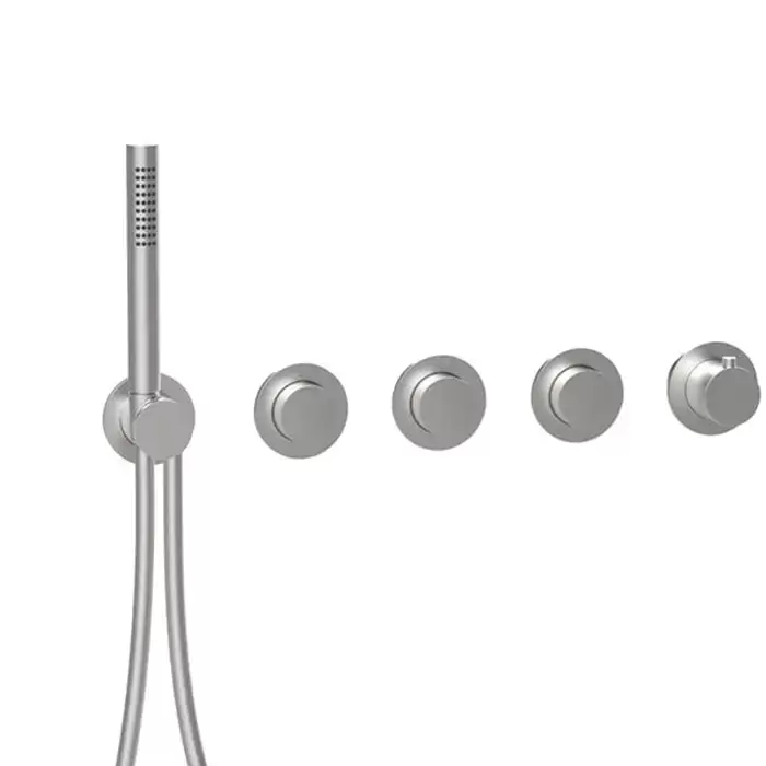 Almar Modular PUSH Смеситель для душа, встраиваемый, термостатический, на 3 потребителя с модулем ручного душа, цвет: нержавеющая сталь брашированная AISI 316