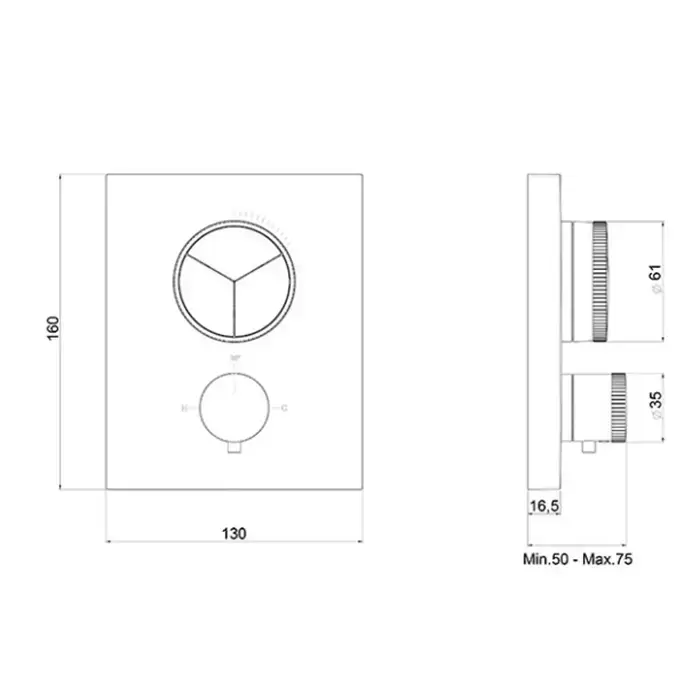 Almar Push Square Core Смеситель для душа, встраиваемый, термостатический, внешняя часть, на 3 выхода, цвет: хром
