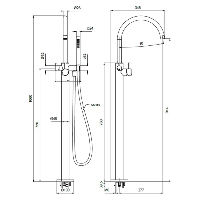 Almar Смеситель для ванны, напольный, с ручным душем, цвет: хром