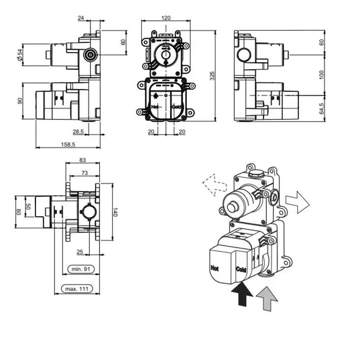 Almar Встраиваемая часть, термостата на 4 потребителя, 2 девиатора