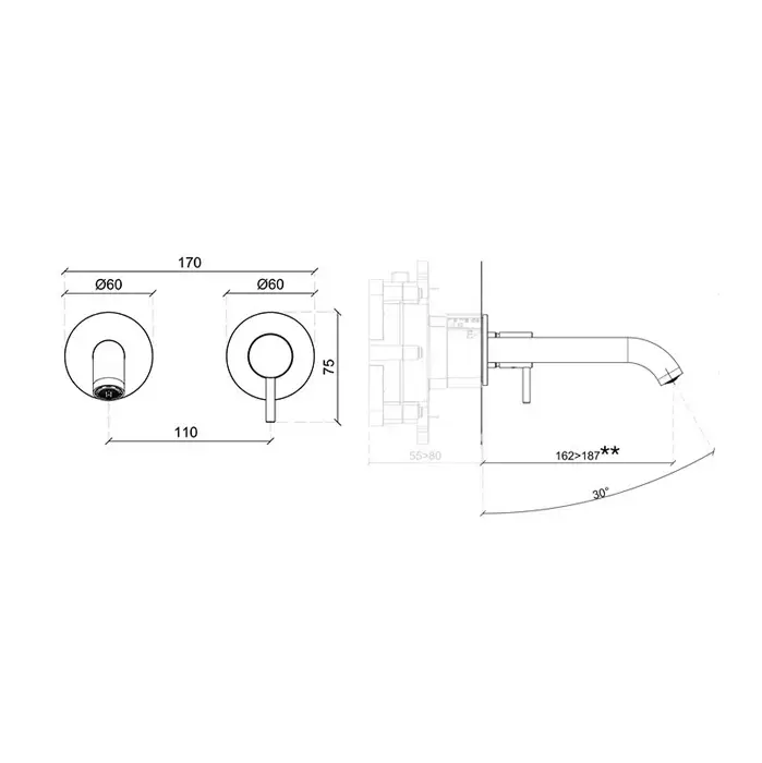 Almar Washbasin Внешняя часть смесителя для раковины, излив 162-187, с регулируемым углом аэратора, расположение универсальное, цвет: хром