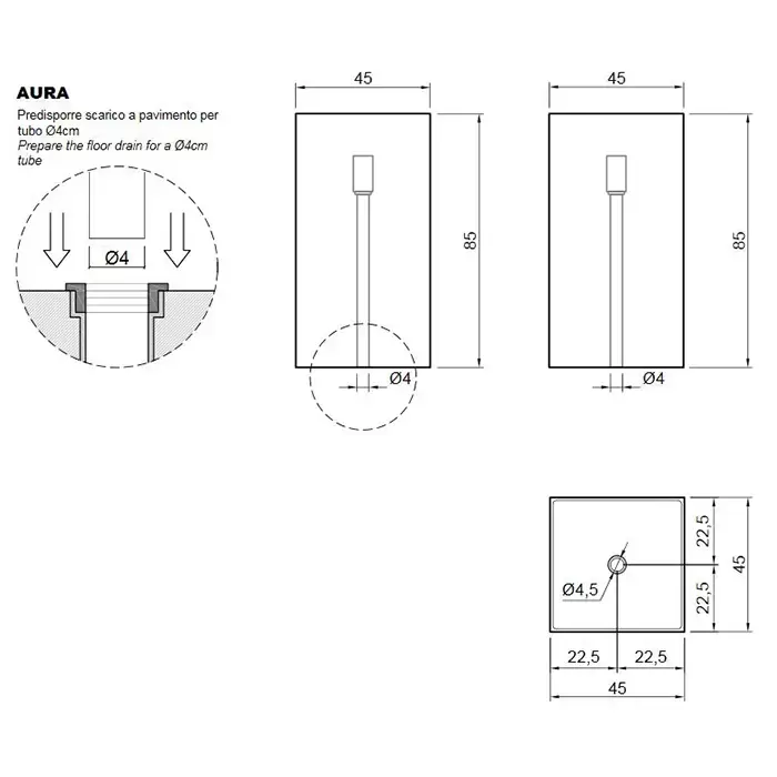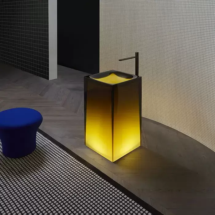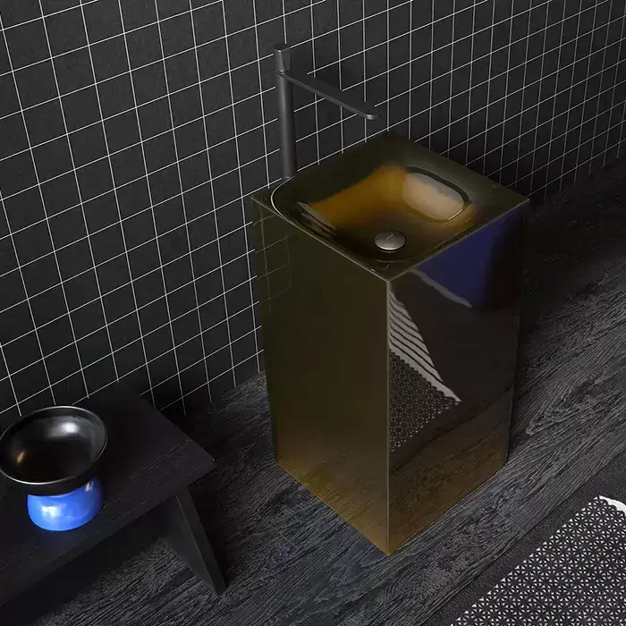 Antonio Lupi Aura Раковина 45х45х85 см, без отв., напольная, слив в пол, с дон. клапан, сифоном и трубой слива, Cristalmood, цвет: Gran_cru
