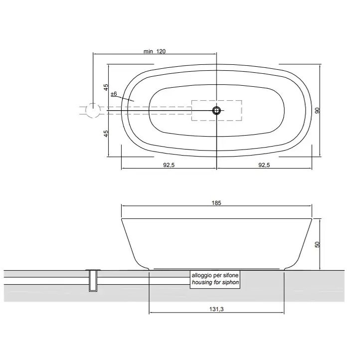 Antonio Lupi Baia Ванна отдельностоящая 185х90х50см, из натурального камня, цвет: Pietra Luna