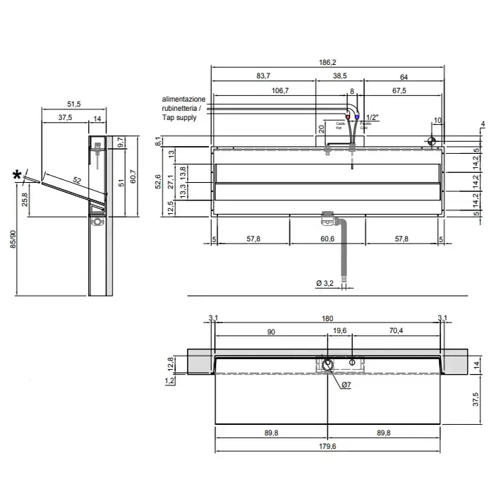 Antonio Lupi Battigia Раковина 180х51.5х60.7 см, без отв., цвет: белый
