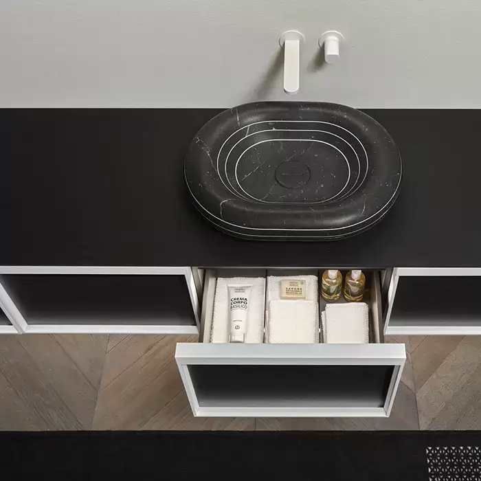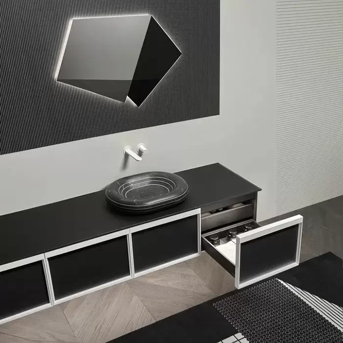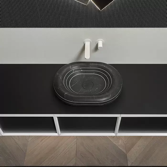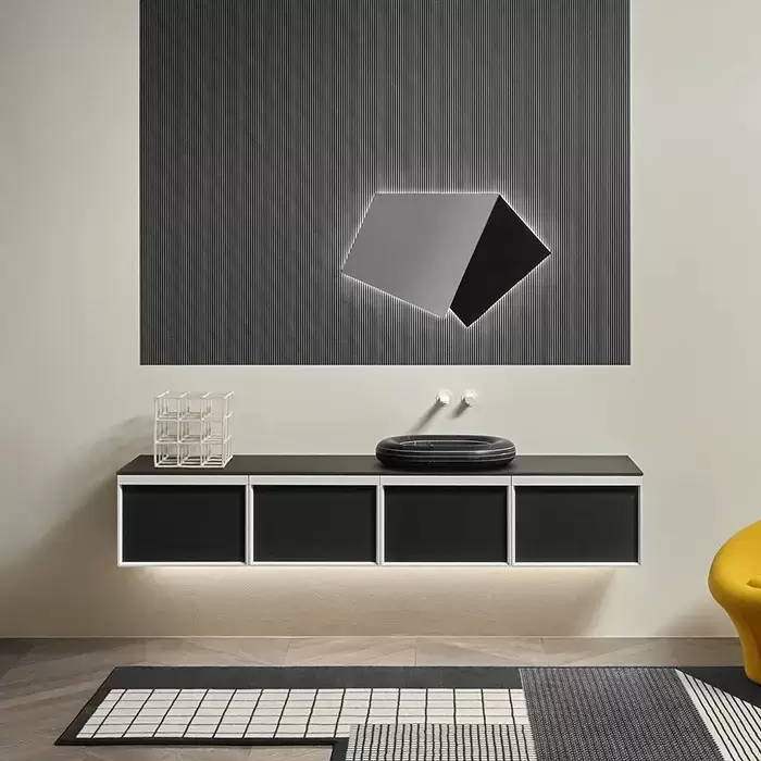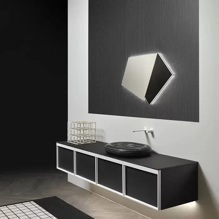 Antonio Lupi Bemade Комплект мебели с тумбами под раковину, раковиной Nero Marquinia, зеркалом с подсветкой, 54 см, подвесной, цвет: Rovere ardesia