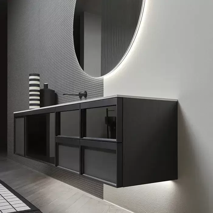 Antonio Lupi Bemade Комплект подвесной мебели с тумбами под раковину, раковиной PODIO90, зеркалом с подсветкой, 90 см, цвет: Rovere Ardesia