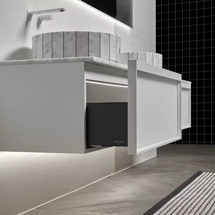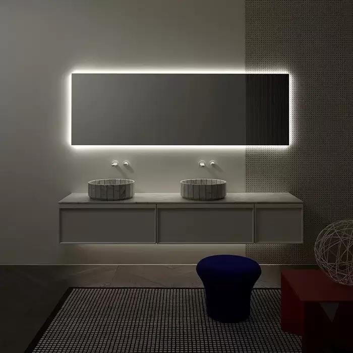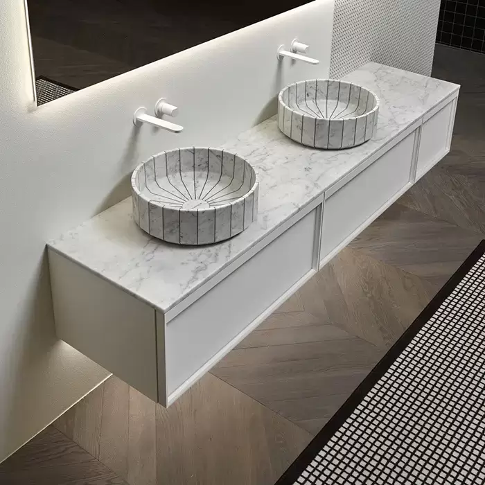 Antonio Lupi Bemade Комплект подвесной мебели с тумбами под раковину, двумя раковинами Carrara, зеркалом с подсветкой, 90 см, цвет: белый матовый