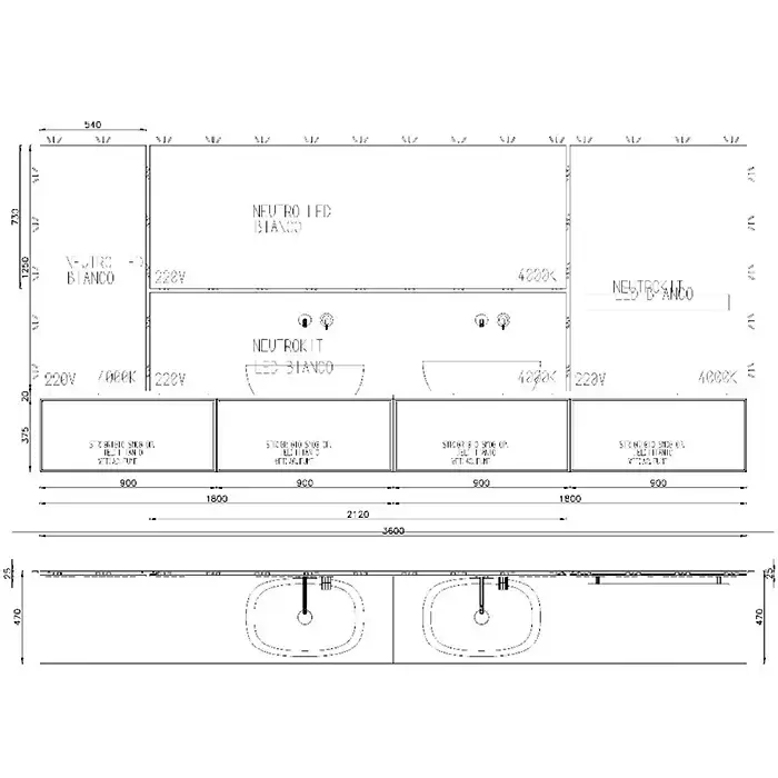 Antonio Lupi Bespoke Комплект мебели с 2 раковинами и зеркалами с подсветкой, подвесной, цвет: titanio
