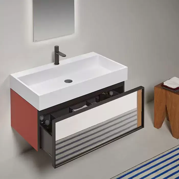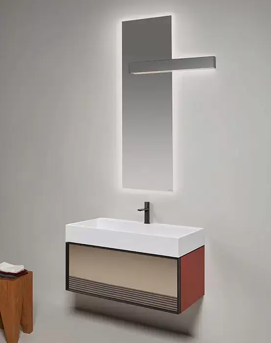 Antonio Lupi Bespoke Комплект подвесной мебели 90х50хh50см, с раковиной, с 1 ящиком с зеркальным фасадом, цвет: Terracotta goffrato/vetro argentato bronzo