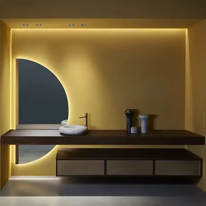 Antonio Lupi Bespoke Комплект подвесной мебели с тумбами под раковину, раковиной Gessati, зеркалом с подсветкой SPICCHIO, 72 см, цвет: Rovere thermo