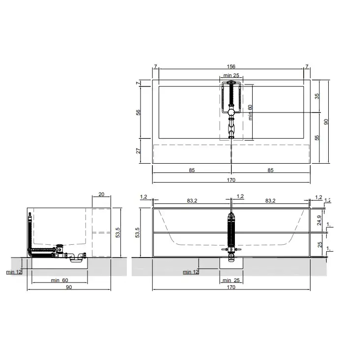 Antonio Lupi Biblio Ванна прямоугольная отдельностоящая, 170х90х53.5см, цвет: белый