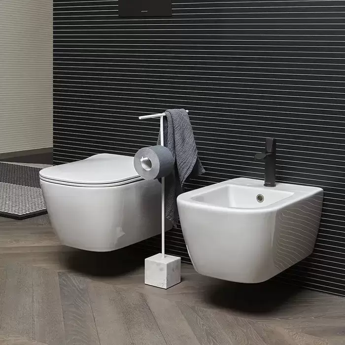 Antonio Lupi Bivio Стойка напольная 65см., с полотенцедержателем и держателем туалетной бумаги, база из мрамора Carrara satinato, цвет: белый матовый