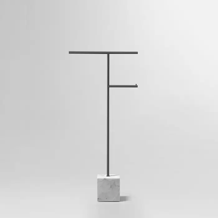 Antonio Lupi Bivio Стойка напольная 65см., с полотенцедержателем и держателем туалетной бумаги, база из мрамора Carrara satinato, структ Nero goffrato
