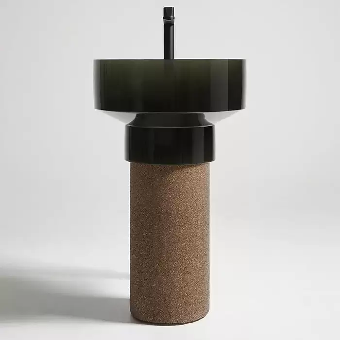 Antonio Lupi Borghi Раковина 50х90 см, без отв., напольная, слив в пол, с донным клапаном и сифоном, пьедестал из пробки Natural, Cristalmood, цвет: Oleo