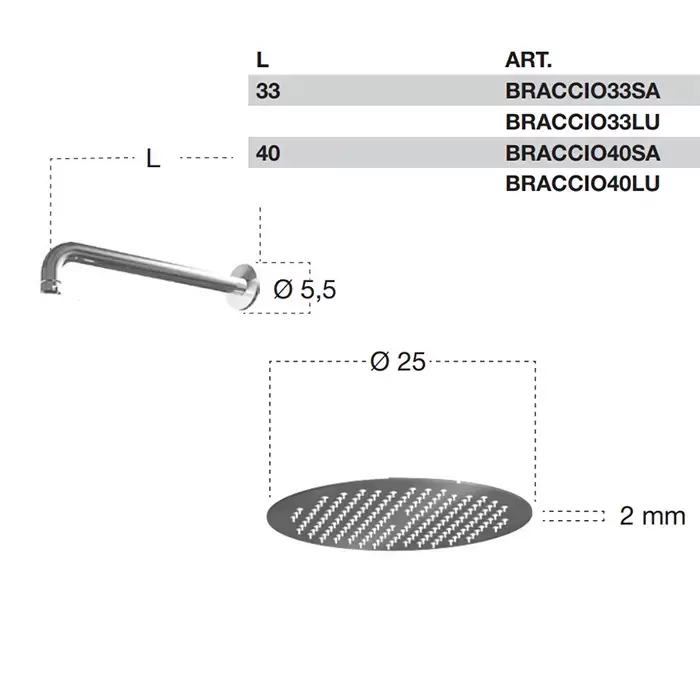 Antonio Lupi Braccio Настенный верхний душ, Ø 25см, длина: 40см, цвет: полированная сталь