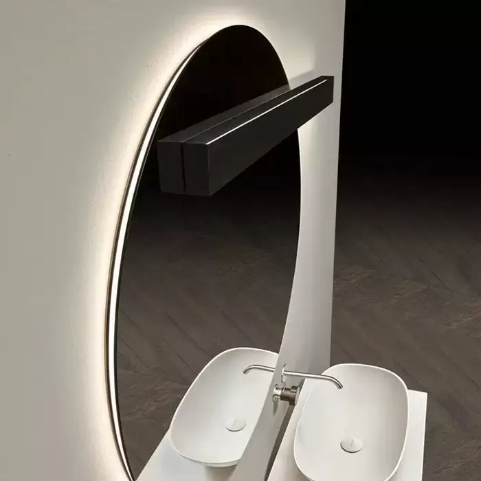 Antonio Lupi Circus Зеркало Ø108cм., с белой светодиодной подсветкой, с блестящей кромкой, с правосторонним светильником LUCENTE, на раме