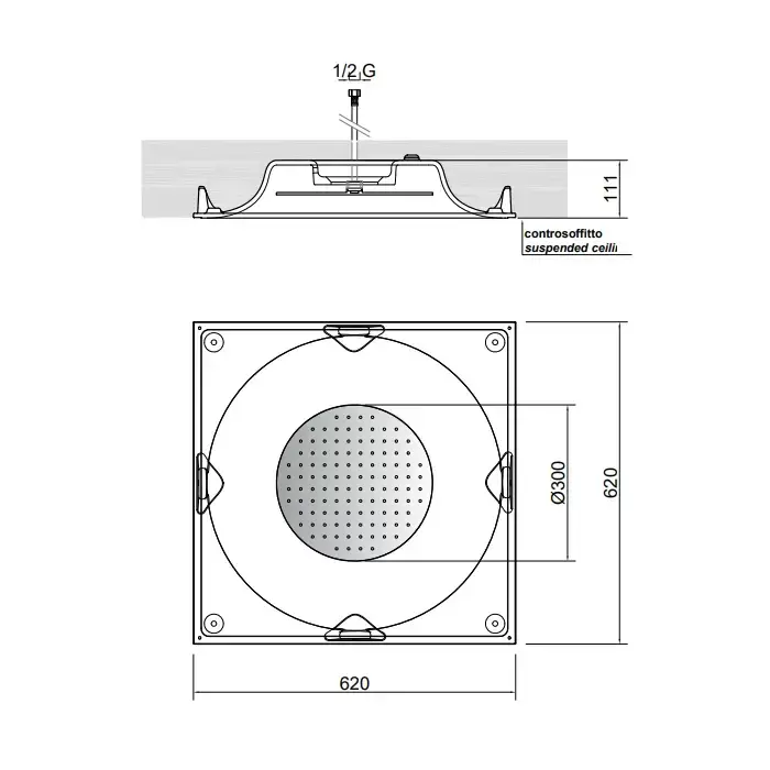 Antonio Lupi Душевая система Meteo In 620 х 620 х 111 мм, без подсветки, цвет: нержавейка