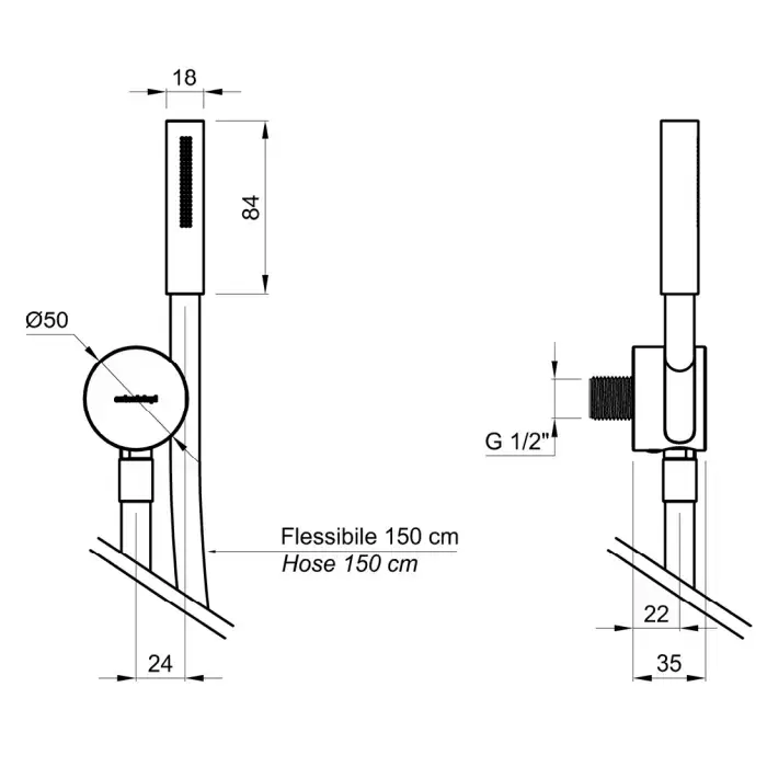 Antonio Lupi Filo Ручной душ, с шланговым соединителем, держателем и шлангом, цвет: полированная сталь