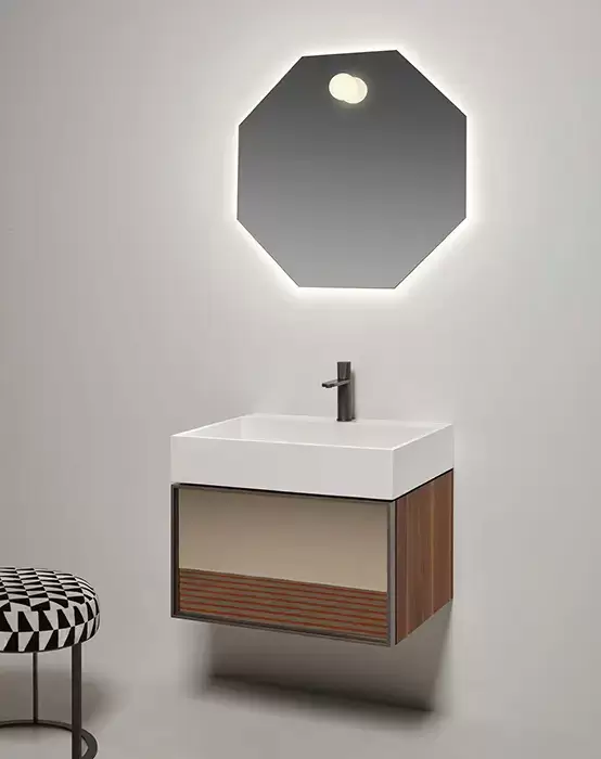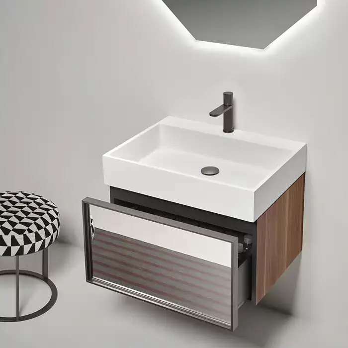 Antonio Lupi Gesto Комплект подвесной мебели 63х50хh37.5см, с раковиной, с 1 ящиком с зеркальным фасадом, цвет: Noce canaletto/vetro argentato bronzo