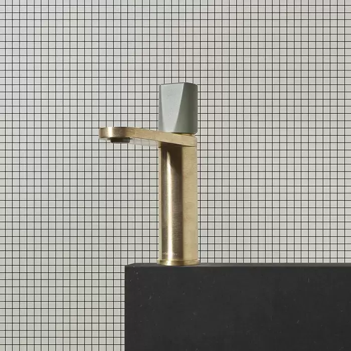 ANTONIO LUPI INDIGO Смеситель для раковины на 1 отверстие, излив 165 мм., ручка матовая Lambretta, цвет: сатинированная натуральная латунь