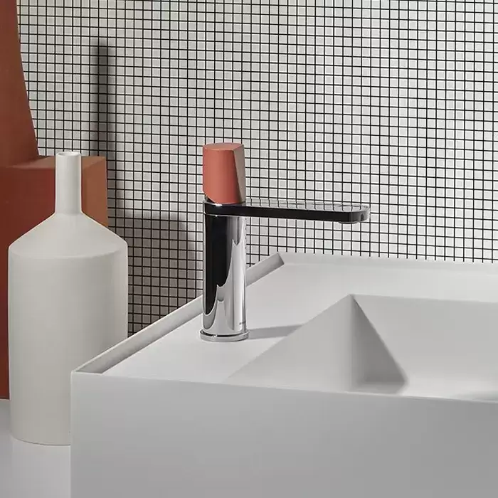 ANTONIO LUPI INDIGO Смеситель для раковины на 1 отверстие, излив 165 мм., ручка Terracotta матовая, цвет: хром глянцевый