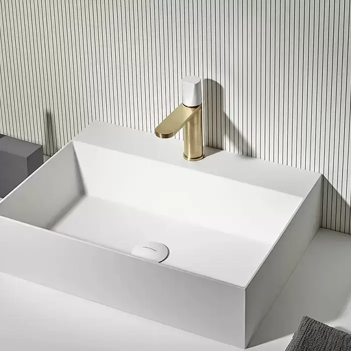 ANTONIO LUPI INDIGO Смеситель для раковины на 1 отверстие, излив 165 мм., ручка белая матовая, цвет: сатинированная натуральная латунь