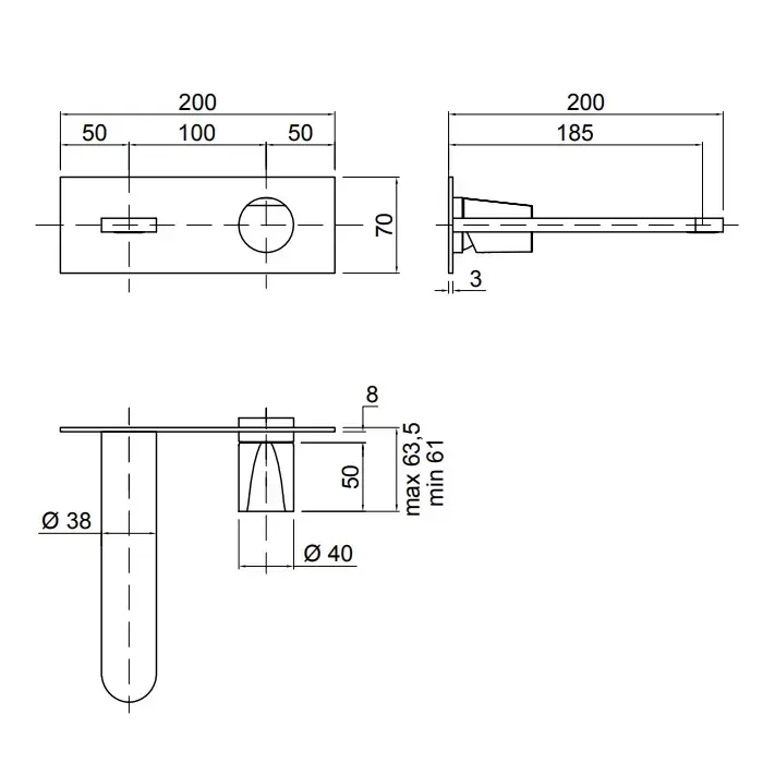 Antonio Lupi Indigo Смеситель для раковины, встраиваемый, излив: 200мм, цвет: графит