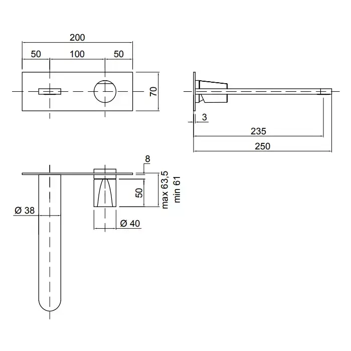 Antonio Lupi Indigo Смеситель для раковины, встраиваемый, излив: 250мм, цвет: графит