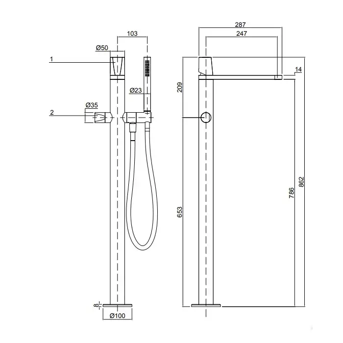 Antonio Lupi Indigo Смеситель для ванны, напольный, с ручным душем, на 1 отв., излив: 285мм, цвет: графит