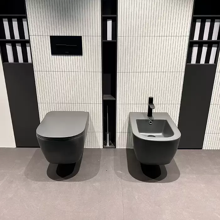 Antonio Lupi Komodo Унитаз подвесной 54х36х26см., безободковый, с сиденьем микролифт, цвет: GRIGIO VESUVIO