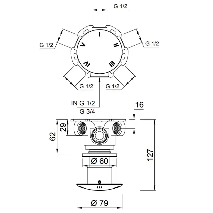 Antonio Lupi MayDay Переключатель потоков на 2, 3, 4 или 5 выходов, цвет: шлифованная сталь